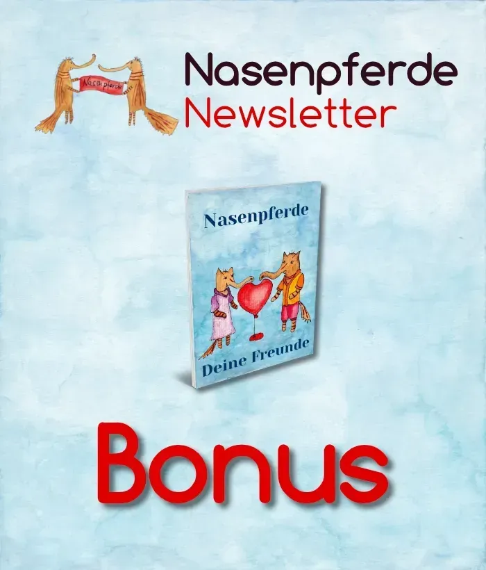 Mit der Nasenpferd-Post flattert regelmäßig ein Hauch von Fantasie, Humor und Tiefgang in dein Postfach. Ideal für große Kinder, kleine Philosophen, Tagebuchliebhaber und Reiselustige.